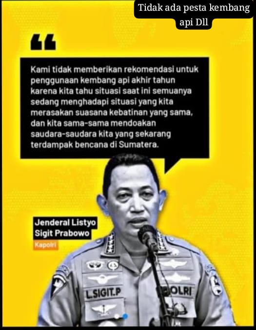 “Kami tidak memberikan rekomendasi untuk penggunaan kembang api di akhir tahun karena kita tahu situasi saat ini semuanya sedang menghadapi suasana kebatinan yang sama dan kita sama-sama mendoakan saudara-saudara kita yang terdampak bencana di Sumatera,” kata Listyo.